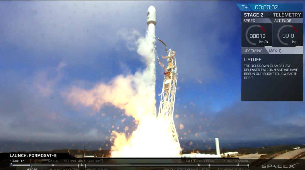 That was quick: US JSpOC is now tracking #FormoSat5 launched this afternoon by SpaceX from Vandenberg as NORAD ID 2017-049A/42920.