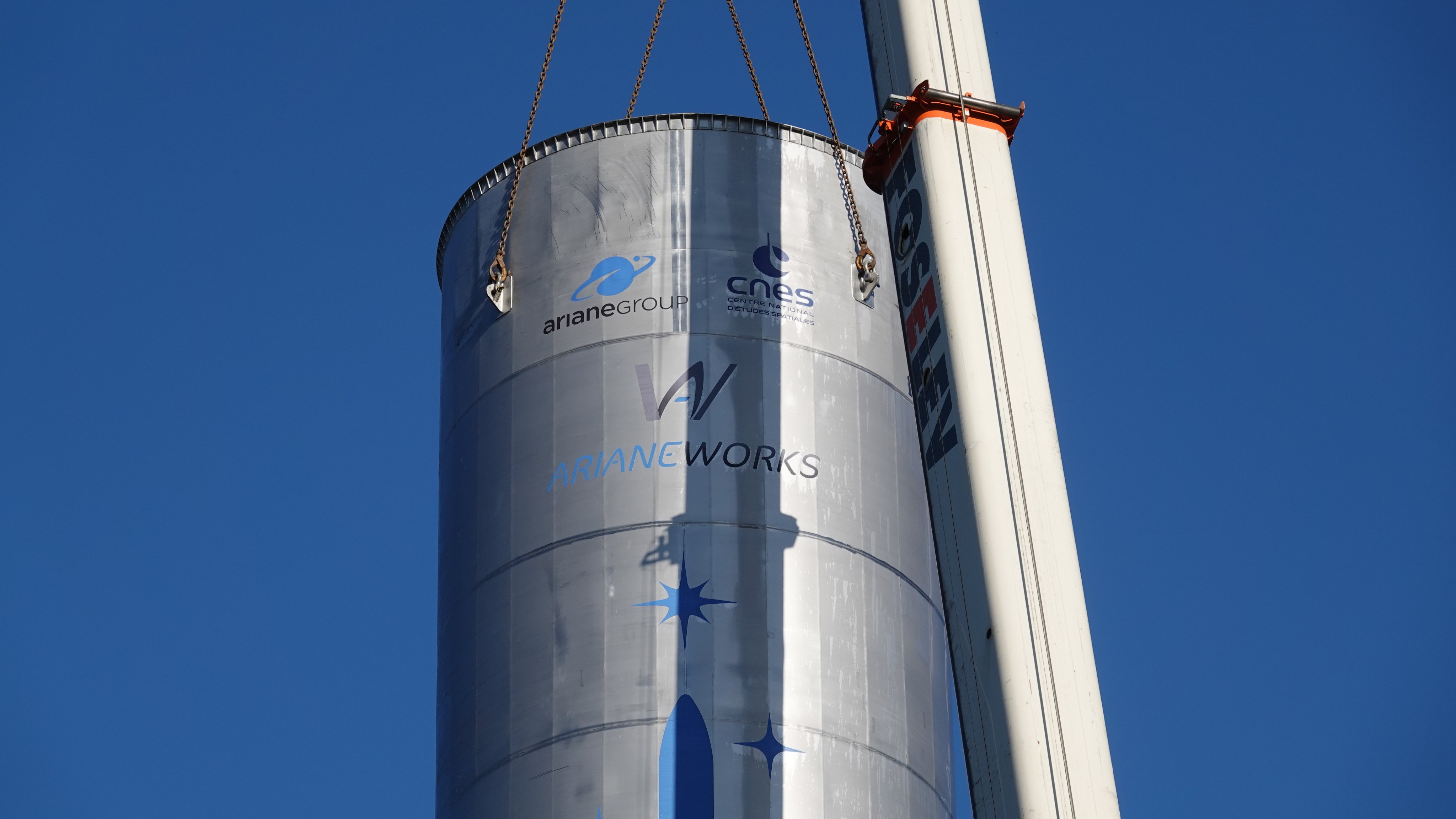 The successful transition for ArianeWorks from the "pilot phase" is a result of a number of achievements completed during the past 18 months : swiftly pre-engineering of the THEMIS rocket vehicle, work on tech ideas for future Ariane concepts, and set up of a volontarist experimental approach. This last part - experiments - is the easiest to illustrate, with pictures of hardware popping up here and there on the historic (Ariane 1!) PF20 zone in ArianeGroup Vernon. Subscaled or scale 1 tanks showed here are meant for test & learn of operations, interfaces, tanking...etc. Though of course not yet flight hardware, they include some of the features targeted for THEMIS, such as common bulhead or internal feed lines.