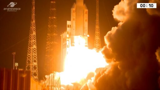 A European Ariane 5 rocket lifts off Thursday from French Guiana. Credit: ESA/CNES/Arianespace – Photo Optique Video du CSG – S. Martin