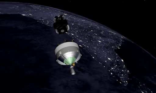 Status callouts from the space center's range operations manager indicated the Ariane 5 flew right on course as it headed over the Atlantic Ocean. The Ariane 5's French-made core stage Vulcain 2 main engine shut down and separated around nine minutes after liftoff, and the German-built HM7B upper stage ignited, consuming a mix of liquid hydrogen and liquid oxygen for around 16 minutes to place two communications satellite — named DSN 1/Superbird 8 and Hylas 4 — into an elliptical geostationary transfer orbit.