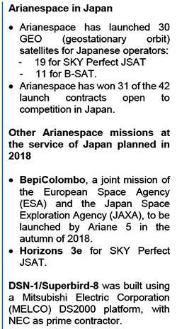 Since launching JCSAT-1 in 1989, Arianespace holds nearly 75% of the Japanese geostationary satellite launch market open to competition.