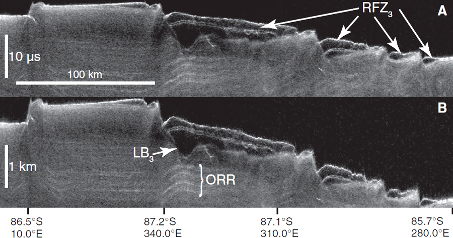 ЦитироватьВернемся в реальный мир. В 2005 году к Марсу прилетел американский космический аппарат MRO. У него тоже имелся радар, хоть и не такой дальнобойный как у Mars Express. Он не смог увидеть дна у южной полярной шапки, зато сумел рассмотреть кое-что интересное для любителей бомбардировок.