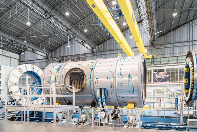 ESA Director of Human and Robotic Exploration Daniel Neuenschwander shared images of the International Habitat (I-Hab) and Habitation and Logistics Outpost (HALO) modules for NASA's Gateway space station under construction at the Thales Alenia Space facility in Turin, Italy.