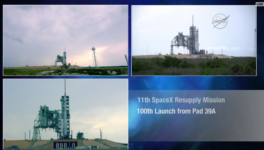 SpaceX gave a "go" for fueling Falcon 9 rocket a few minutes ago, but weather currently "no go" for launch. https://spaceflightnow.com/2017/06/01/spacex-crs-11-mission-status-center/ ...