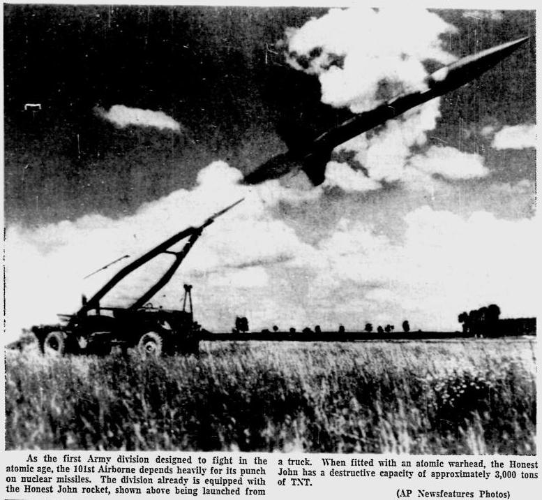 Атомный полигон, штат Невада. Командование ПВО раскололо в пятницу небо своей новой мощной атомной ракетой и заявило о полном успехе первого запуска с самолета.