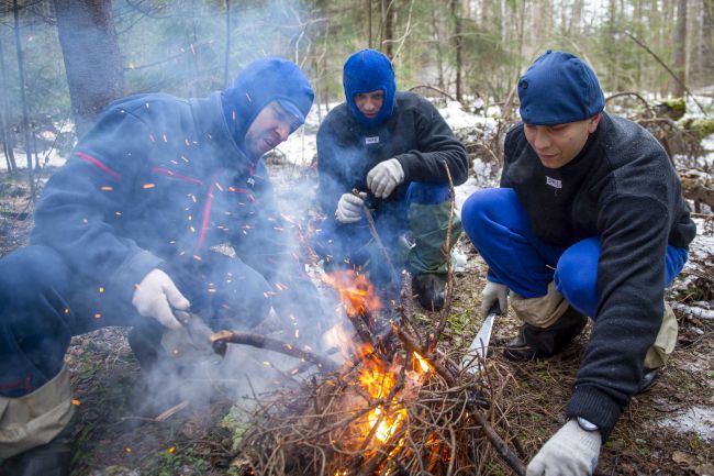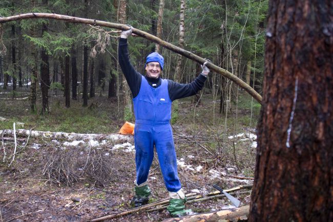 Из-за капризов погоды сейчас в лесу практически нет снега, что сильно облегчает работу экипажа – не приходится тратить физические усилия  на передвижения по местности, как бывает суровой зимой, проще собрать ветки и валежник для обогрева.