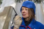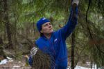 «Для меня самое сложное – это рубить деревья, но я справляюсь», – поделилась эмоциями Анастасия Бурчуладзе.