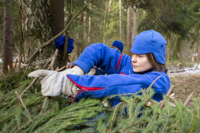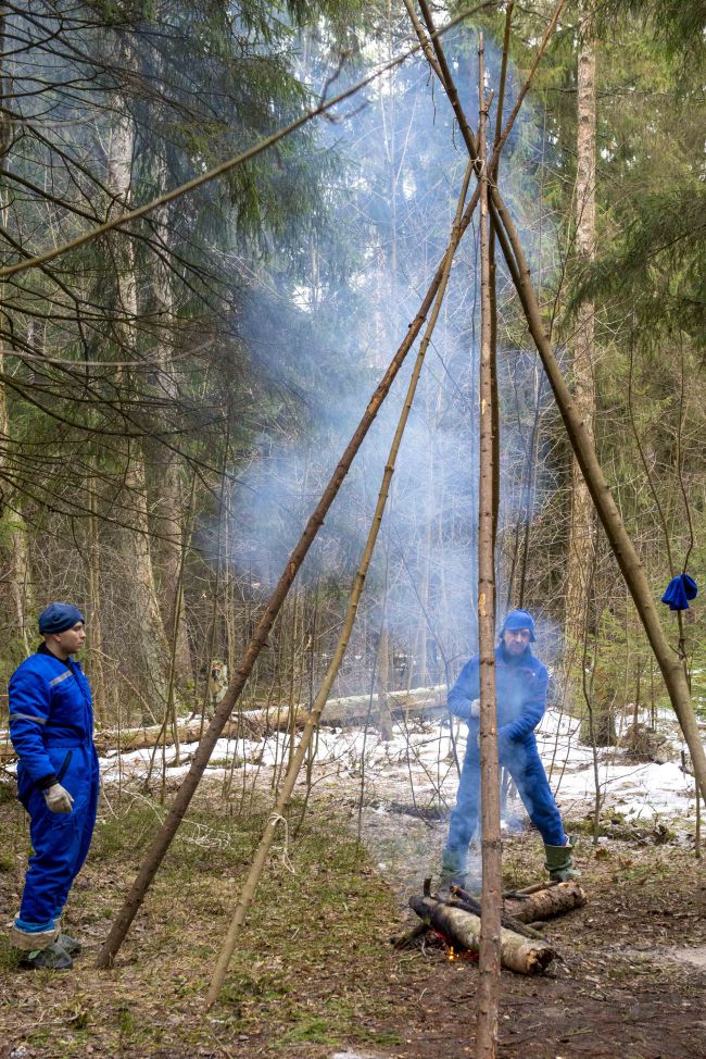 Благодаря апрельской погоде в январе снега в лесу практически не было, поэтому экипажу было легко по нему ходить, чтобы, например, набрать веток для разведения костра или жердей для сооружения вигвама.