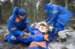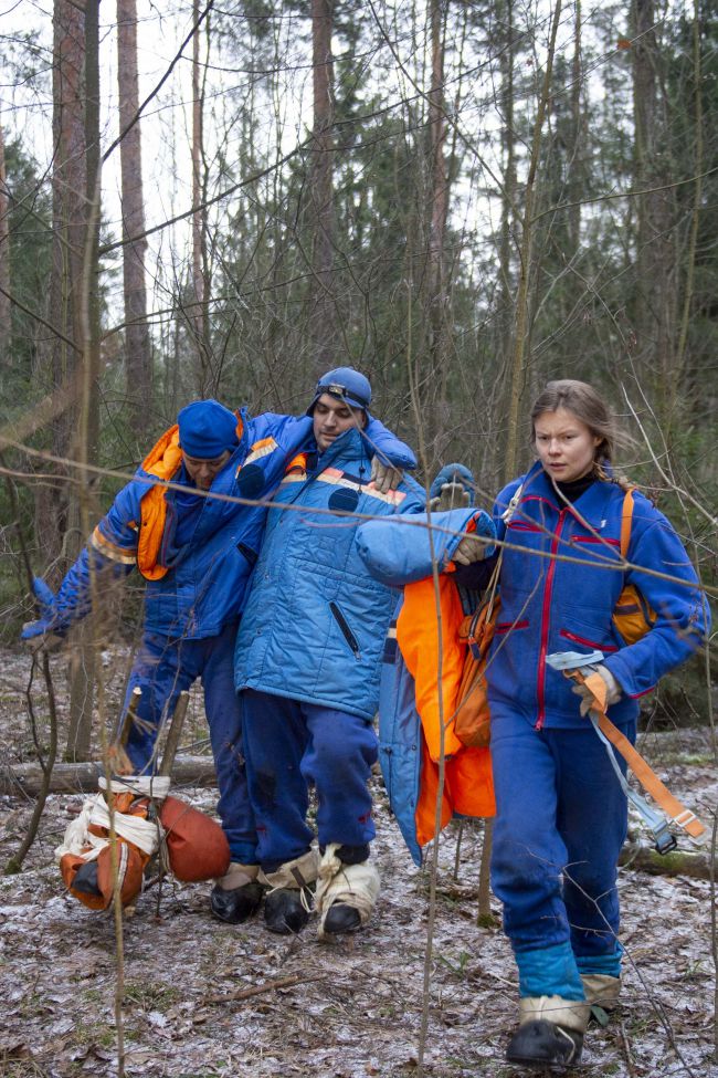 После ухода представителей СМИ экипаж продолжил выполнять циклограмму тренировки. Проведя вторую ночь в лесу, наутро они отправились навстречу группе спасателей. И в начале перехода командир «сломал» правую ногу. Поэтому его товарищам понадобилось оказать пострадавшему экстренную медицинскую помощь, зафиксировать травмированную конечность, сделать носилки из подручных материалов и эвакуировать командира. И экипаж справился с поставленной задачей.