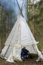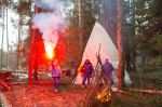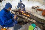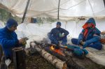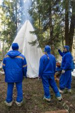 Затем представители СМИ смогли оценить походный быт участников тренировки: устройство вигвама, организацию питания, способы оповещения о местоположении экипажа. Для этой цели был разведён сигнальный костёр, а также использовано  пиросигнальное средство.
