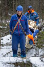 На завершающем этапе тренировки, когда экипаж уже покинул лагерь и направился на встречу со спасателями, случилась нештатная ситуация – бортинженер «сломал» ногу. Его товарищи оказали пострадавшему первую медицинскую помощь, соорудили носилки из подручных материалов и доставили к месту посадки поисково-спасательного вертолёта.