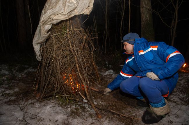 До наступления темноты экипаж должен разбить лагерь, построить укрытие, в котором предстоит ночёвка, обеспечить себя дровами для обогрева и приготовления пищи.  Участники тренировки с помощью имеющихся в их распоряжении средств должны дать сигнал о своём местоположении (например, развести костёр),  и каждый час обязаны выходить на связь с поисково-спасательной службой, докладывая о сложившейся обстановке. Вечером и ночью экипаж должен находиться в лагере – ходить по лесу в тёмное время суток запрещено. А завтра, после ночёвки в лесу, Дмитрий Петелин, Анастасия Бурчуладзе и Эльчин Вахидов приступят к следующему этапу тренировки.