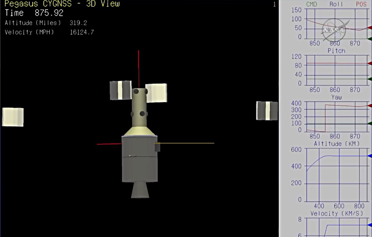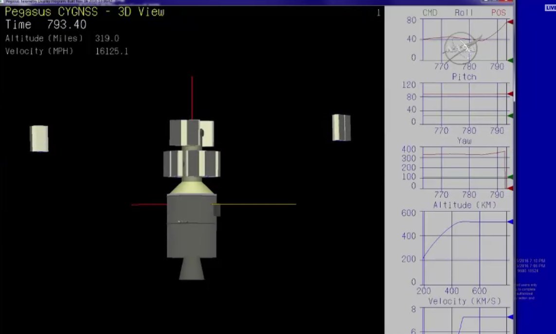 Stage 3 burnout and vehicle is in orbit! Currently reorienting for payload deployment #CYGNSS #Pegasus
