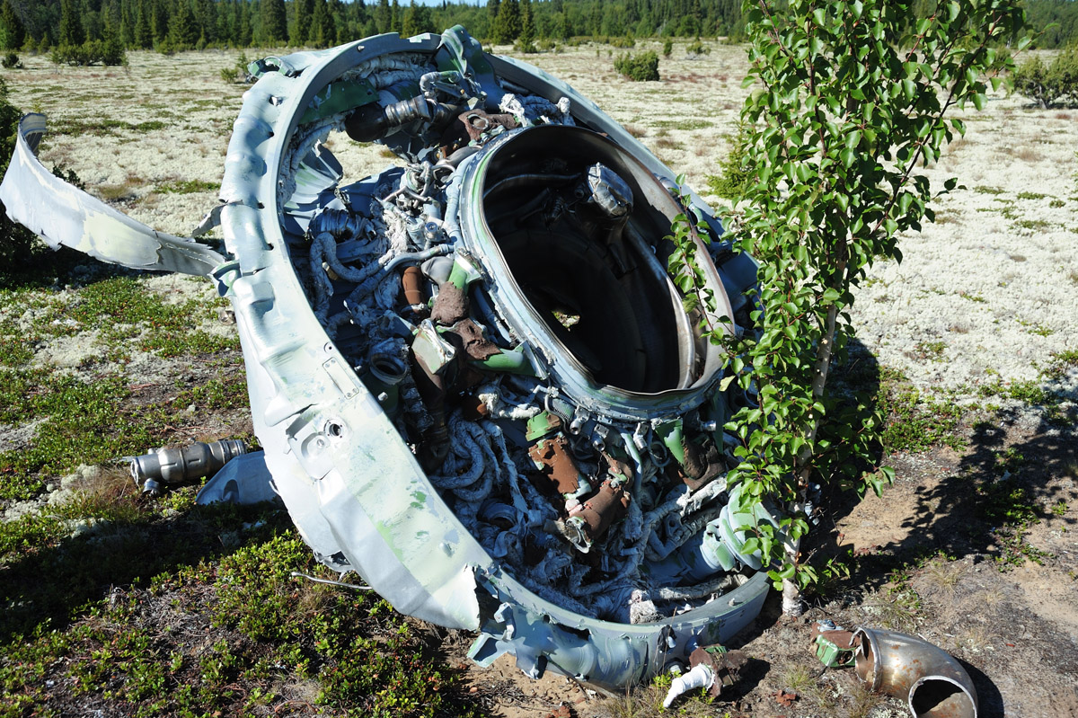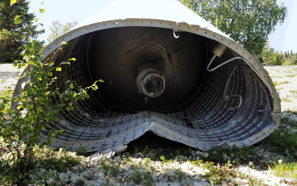 Части упавшей первой ступени Р-29РМ (3М37). Кольский п-ов, недалеко от берега реки Стрельна, примерно тут.