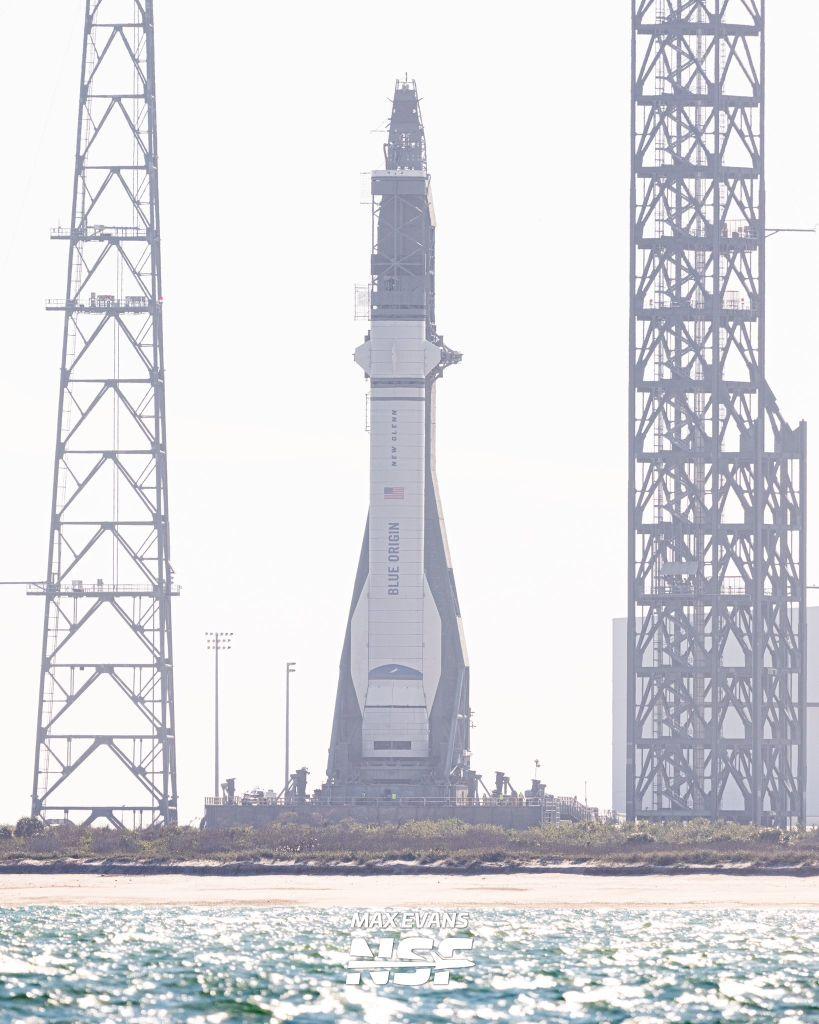 Meet New Glenn! Our vehicle upended on its launch pad today for the first time. The rocket will remain vertical for at least a week for a series of tests in preparation for its first launch later this year. Thank you to our customers, partners, and everyone else championing efforts to build a road to space for the benefit of Earth. Learn more: https://www.blueorigin.com/news/blue-origin-debuts-new-glenn-on-our-launch-pad