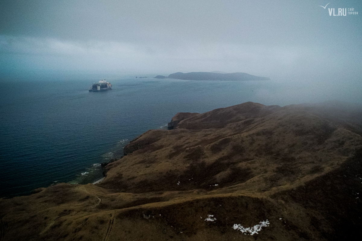 Чайки приветствуют плавучий космодром "Odissey" в порту Славянка