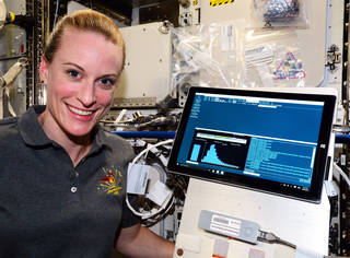 NASA Astronaut Kate Rubins established the order of base pairs in a section of DNA in space for the first time using the Biomolecule Sequencer investigation during Expedition 48 in August 2016.