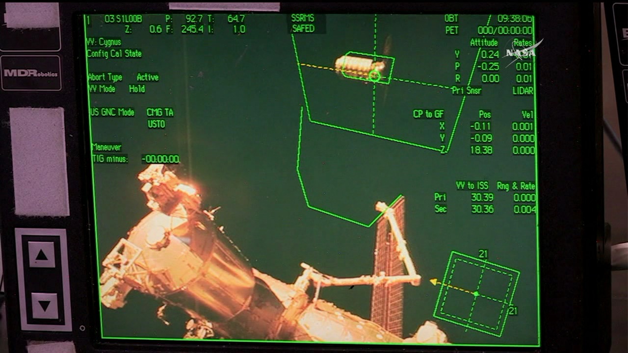 #Cygnus now on final approach from its 30 meter hold point into the SSRMS capture volume.