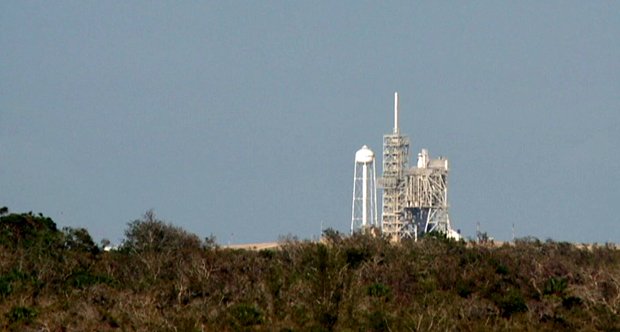 The clamps at the top of the strongback holding the Falcon 9 rocket have opened. Ignition of the rocket's Merlin main engines could be moments away.