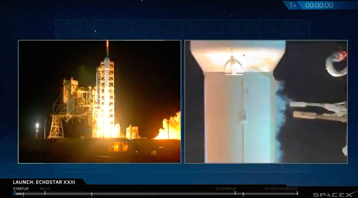 Запуск EchoStar 23 планировался на 2016 год, но был отложен из-за взрыва в сентябре прошлого года в ходе предстартовых испытаний ракеты Falcon 9. Попытка запуска во вторник 14 марта была отложена по погодным условиям из-за сильного ветра.