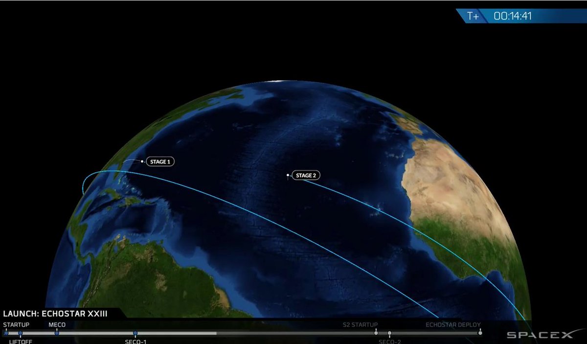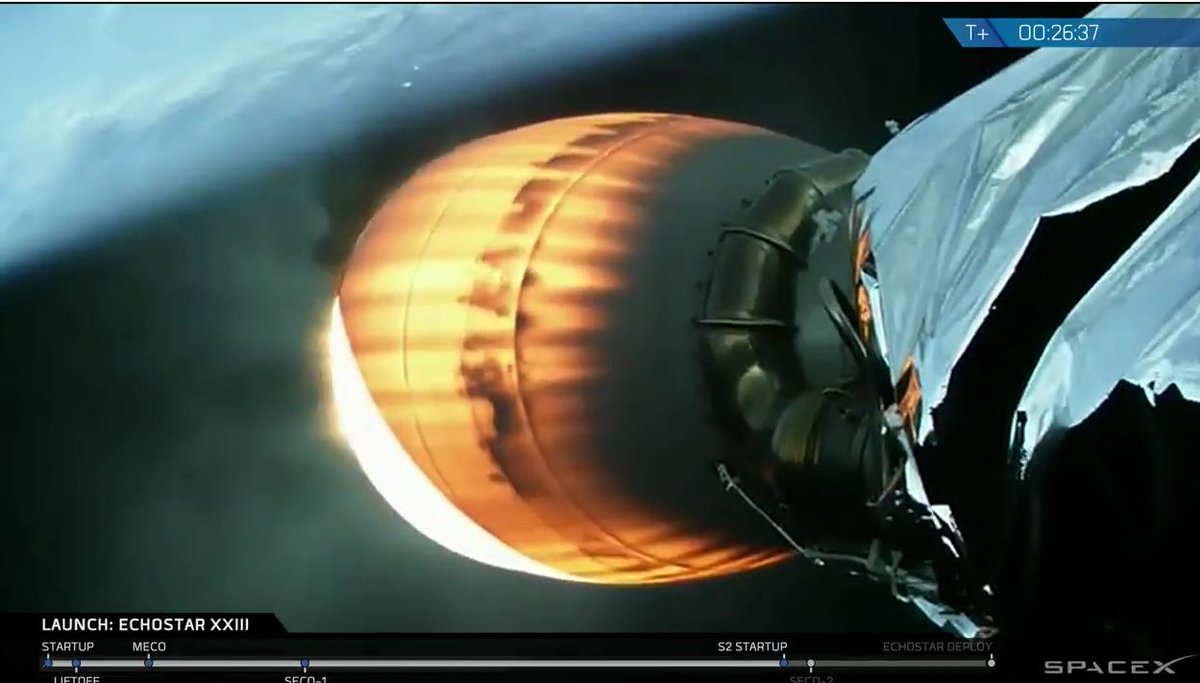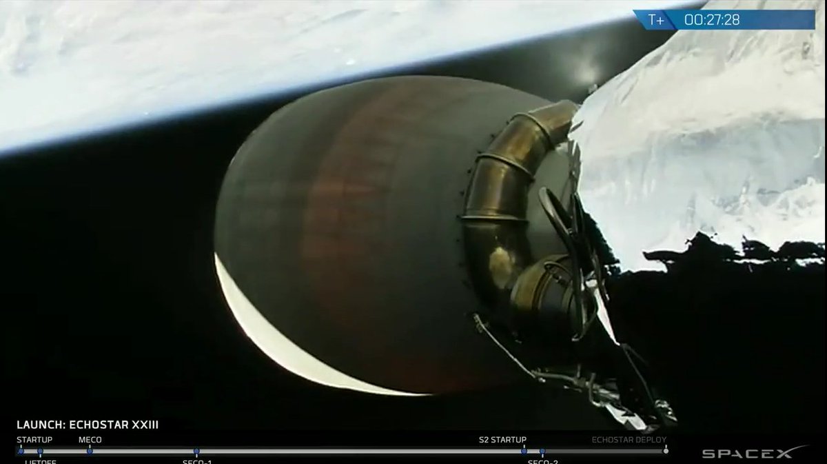 Coming up on MVac re-start in five minutes to finish lifting EchoStar-23 to Geostationary Transfer Orbit. http://bit.ly/2mSGrgg