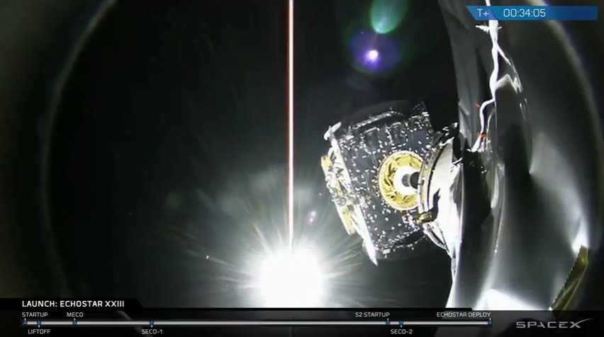 S/C Sep for EchoStar 23 following SpaceX Falcon 9 launch! ARTICLE: https://www.nasaspaceflight.com/2017/03/falcon-9-expendable-echostar-23/ ... - COVERAGE: https://forum.nasaspaceflight.com/index.php?topic=41932.0 ...
