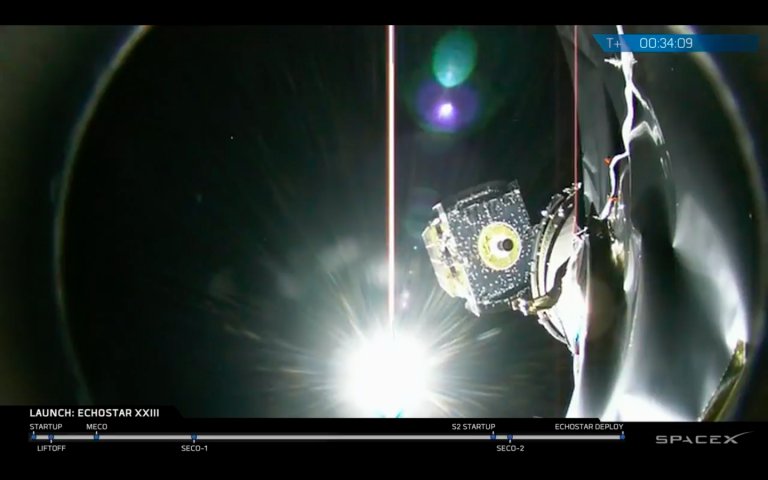 The EchoStar 23 satellite is seen deploying from the Falcon 9 upper stage in orbit March 16. Credit: SpaceX
