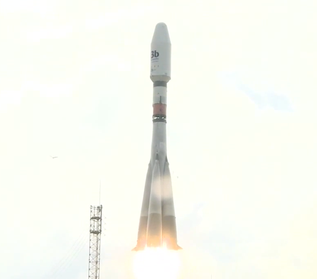 The 7,055-pound (3,200-kilogram) satellite is at the top end of the Soyuz ST-B's GTO lift capacity and is designed to have an on-orbit lifetime of 15 years.