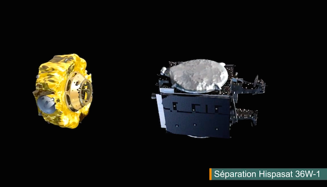 The Hispasat 36W-1 communications satellite separates from the Fregat upper stage.