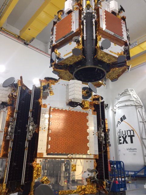 Within the last week, technicians from satellite-builders Thales Alenia Space and Orbital ATK have filled all 10 "Iridium Next" satellites with hydrazine fuel used to maneuver the spacecraft once in orbit.