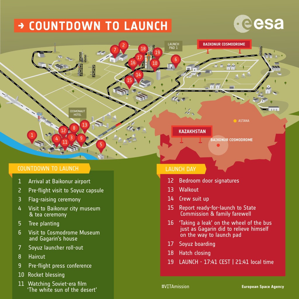 Be prepared for launch day. Here's a quick overview of the crew's schedule starting at L-9 hours (times are approximate and in CEST):