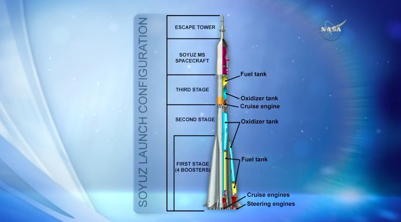 The Soyuz launch shroud will release at T+plus 2 minutes, 37 seconds, followed by ignition of the third stage RD-0110 engine and separation of the Soyuz second stage at T+plus 4 minutes, 45 seconds.