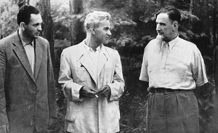 © РИА Новости, РИА Новости | Перейти в фотобанкВасилий Мишин, Мстислав Келдыш, Игорь Курчатов, Сергей Королев