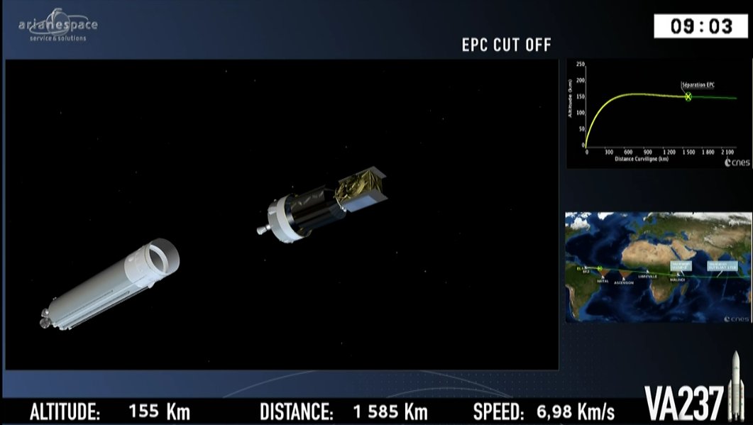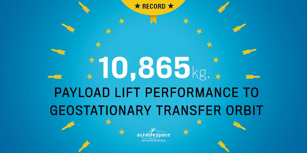 #VA237's total 10,865 kg. payload orbited is an all-time #Arianespace record, including a net liftoff mass of 9,969 kg. for the satellites