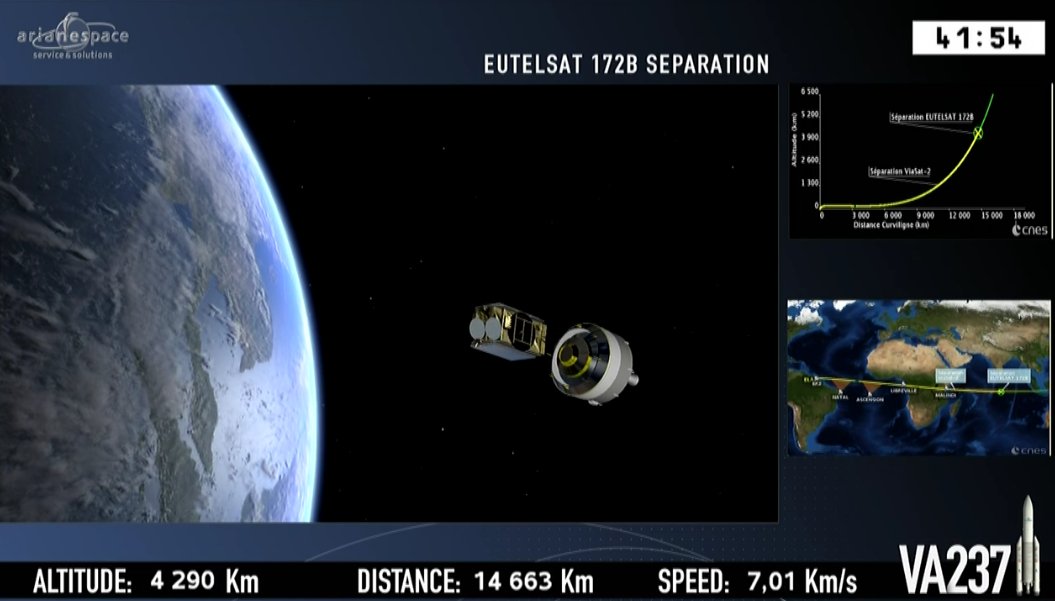 SEPARATION! The all-electric Eutelsat 172B satellite is on its way, starting a lengthy orbit-raising campaign. http://bit.ly/2rcFYpk