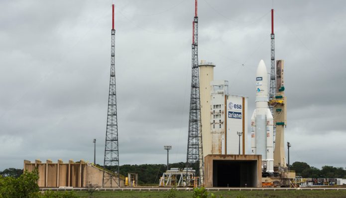 The Ariane 5 for Arianespace's sixth mission overall in 2017 is now at the launch zone, ready for a June 1 evening departure from the Spaceport in French Guiana to inject the dual-satellite payload of ViaSat-2 and EUTELSAT 172B into geostationary transfer orbit.
