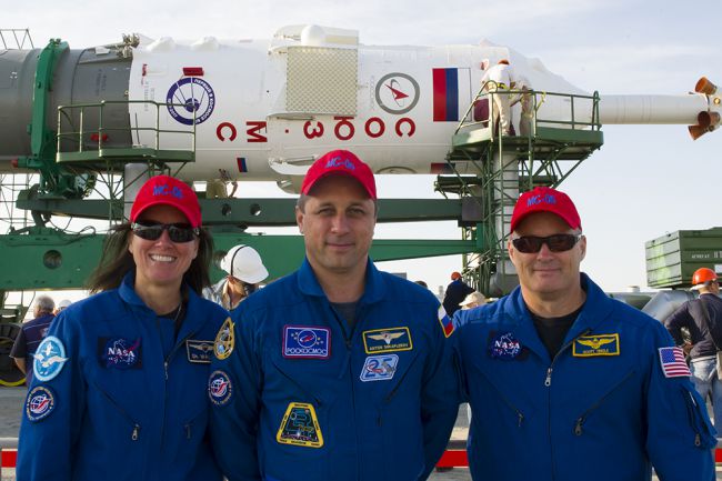 Члены дублирующего экипажа МКС-53/54: Шеннон Уокер, Антон Шкаплеров и Скотт Тингл