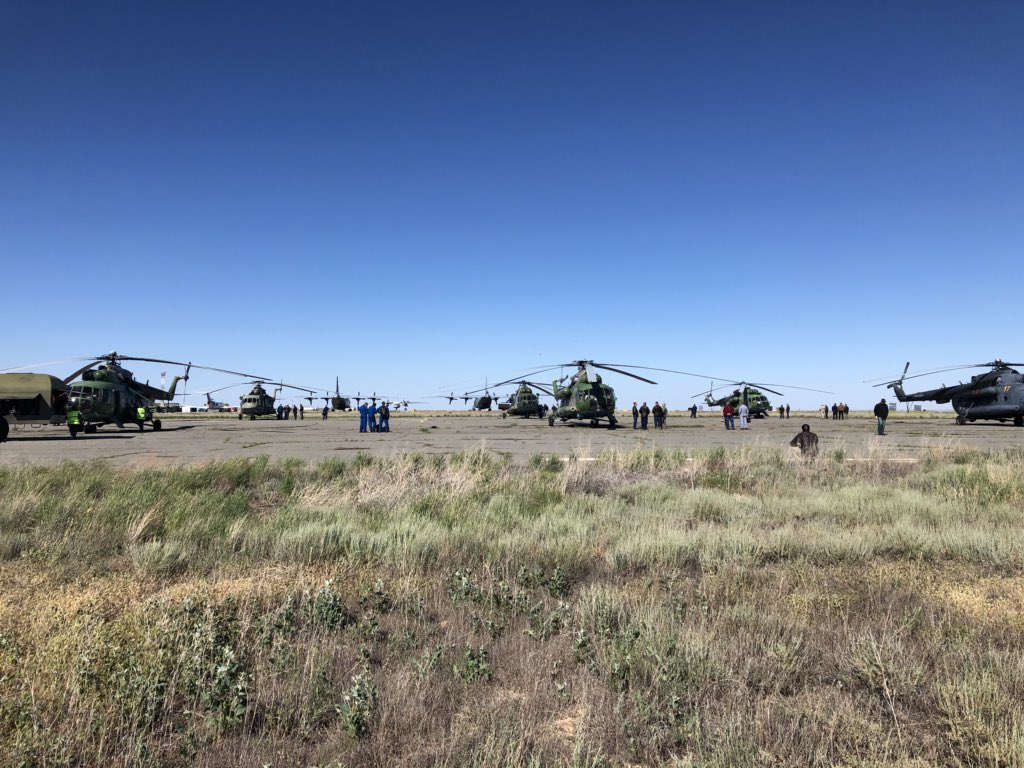 Beautiful day in Dzhezkazgan, Kazakhstan - standing by to deploy to the LZ to pick up @Astro_Maker @Astro_Kanai & @Anton_Astrey - on their way home from the @Space_Station!