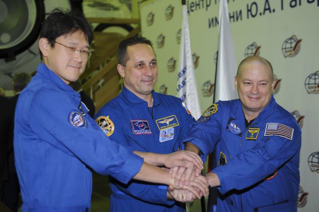 Основной экипаж МКС-54/55: Норишиге Канаи, Антон Шкаплеров и Скотт Тингл