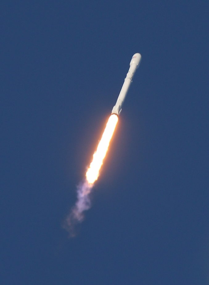 The Falcon 9 rocket reaches Mach 1, the speed of sound, as the nine Merlin 1D engines provide more than 1.7 million pounds of thrust.