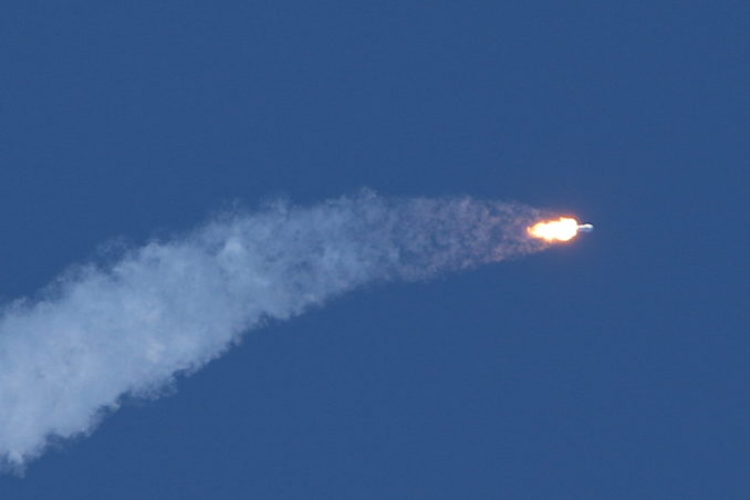 The Falcon 9 rocket reaches Max Q, the point of maximum aerodynamic pressure.