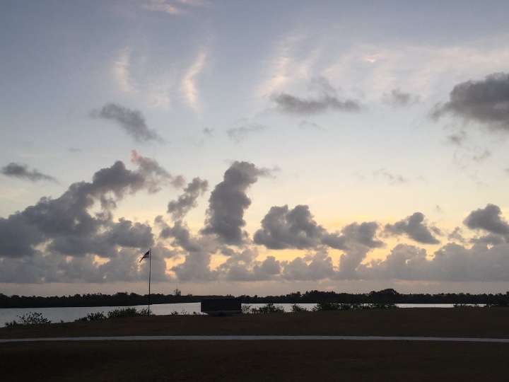 It's a gorgeous morning here at the Kennedy Space Center in Florida. Here's a view taken a couple of minutes ago from the Spaceflight Now office.