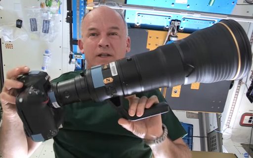 Astronaut Jeff Williams with one of the larger pieces of camera equipment available on ISS – Photo: NASA