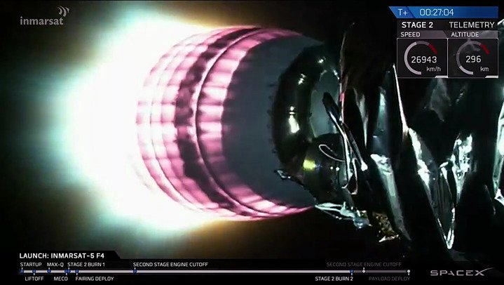 On May 15, 2017, SpaceX's Falcon 9 rocket successfully delivered the Inmarsat-5 F4 satellite to a Geostationary Transfer Orbit. Inmarsat-5 F4 is the fourth commercial communications satellite in Inmarsat's Global Xpress (GX) constellation--the world's first globally available, high-speed, mobile broadband service.