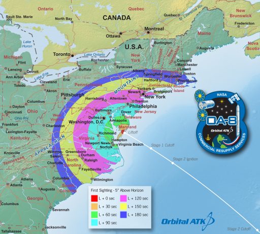 OA-8 Ground Track & Visibility – Image: Orbital ATK / NASA Wallops