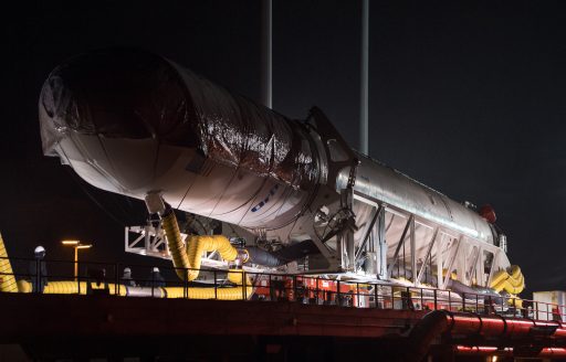 Only the 27.6-meter long first stage of the Antares rocket has to be loaded during the countdown – the second stage is a 26-metric-ton Castor 30XL Solid Rocket Motor that will be tasked with giving Cygnus the final push into orbit.