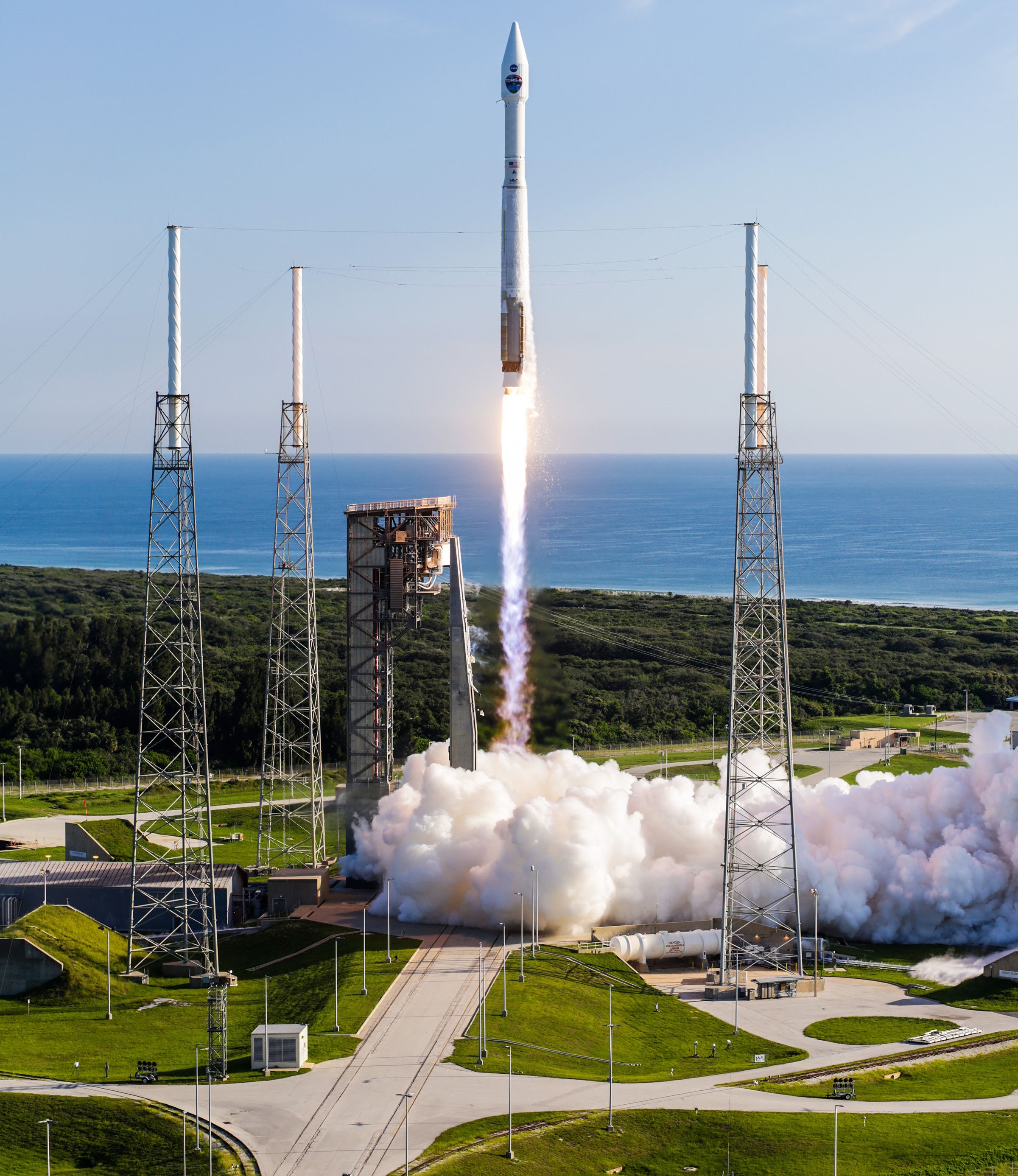 Powering away from Florida's Space Coast with its RD-180 engine, Atlas V fired its first stage for four minutes before the Centaur upper stage took over for an initial 13.5-minute burn followed by 90 minutes of passive coasting prior to a brief re-light of the upper stage to inject the 3.5-metric ton satellite into a Geostationary Transfer Orbit.