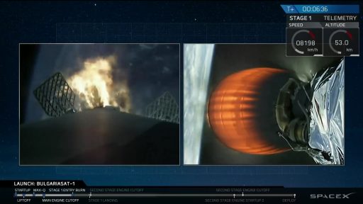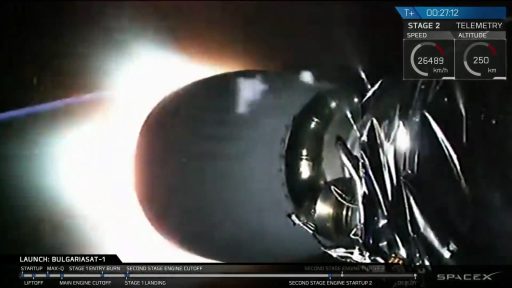 BulgariaSat-1 drifts into the Night after a successful Launch – Photo: SpaceX Webcast