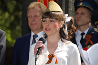 Молодое поколение сегодняшнего мероприятия - школьники и представители Совета молодёжи Центра имени Хруничева – провели музыкально-литературную часть митинга, исполнив песни военных лет.