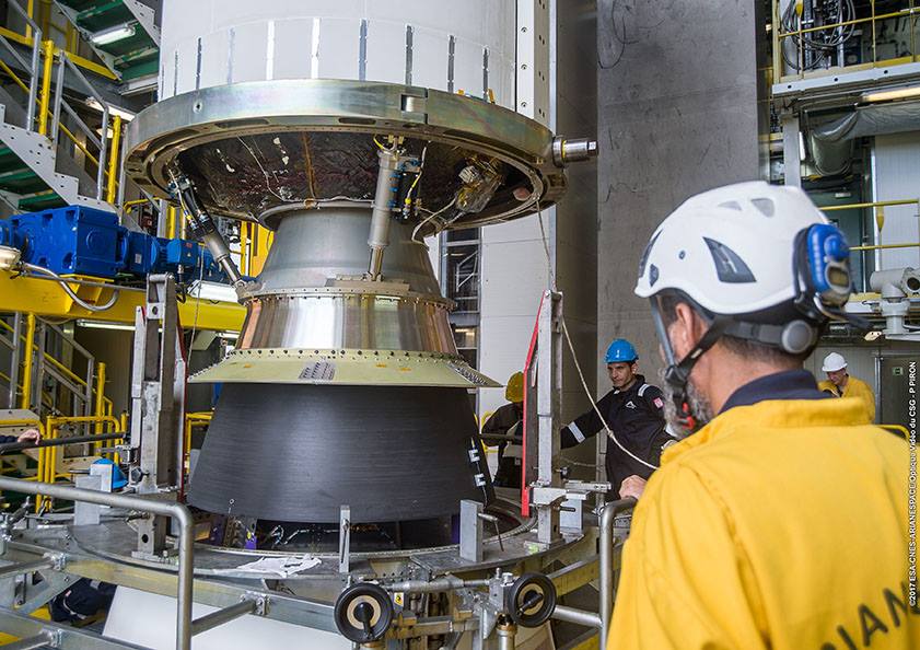 Nice shot of #Vega #VV10 Zefiro 9 third stage being lifted into place during launcher integration at #ZLV